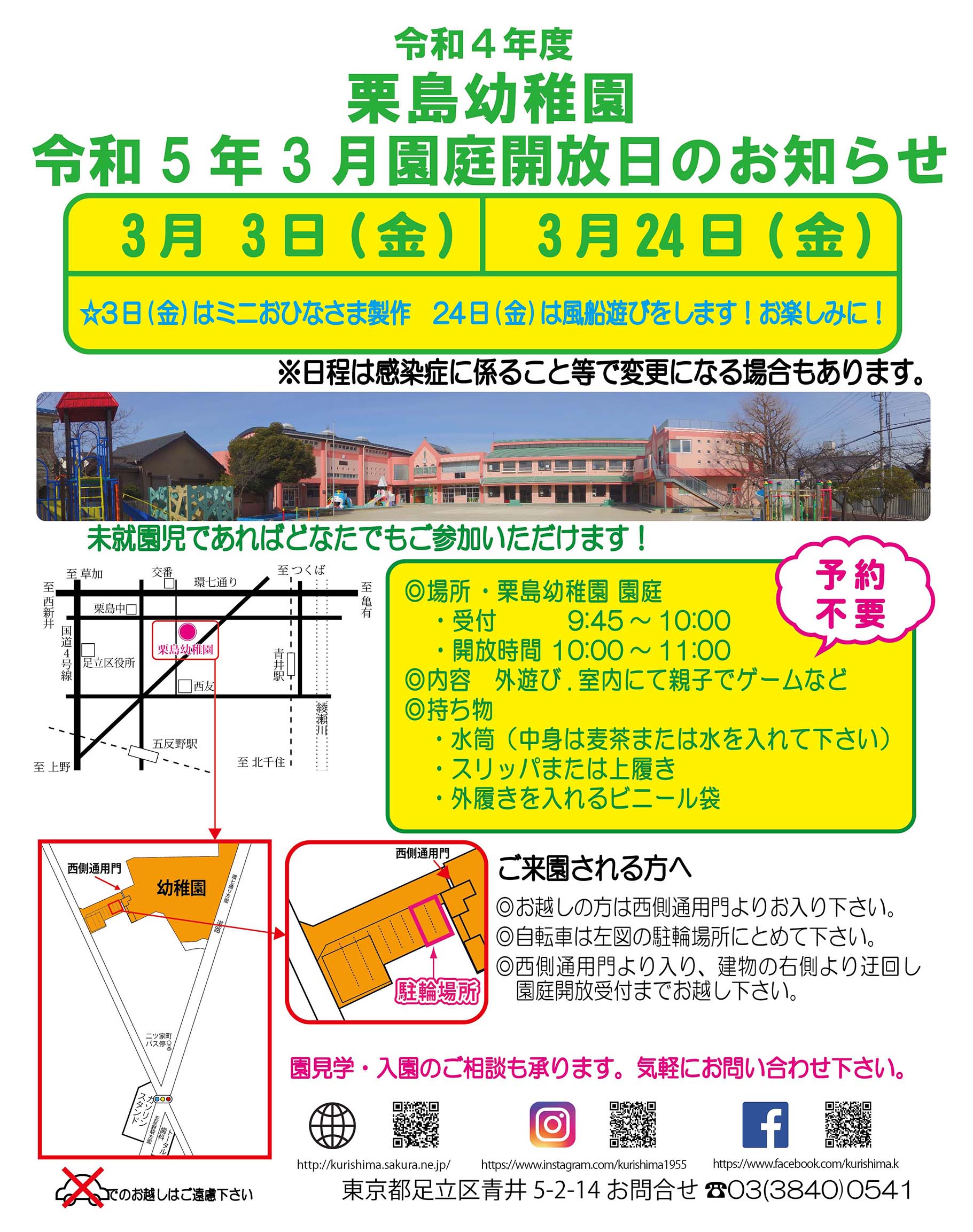 3月園庭開放日程のお知らせ(こちらをタップすると詳細がご覧になれます。)